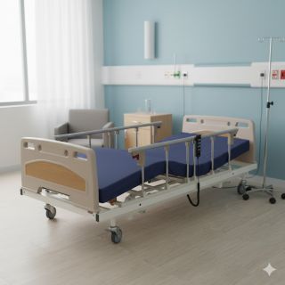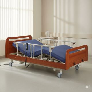Side Rails: Equipped with split-type side rails that can be raised or lowered. These prevent falls and provide support for users when turning or sitting up.